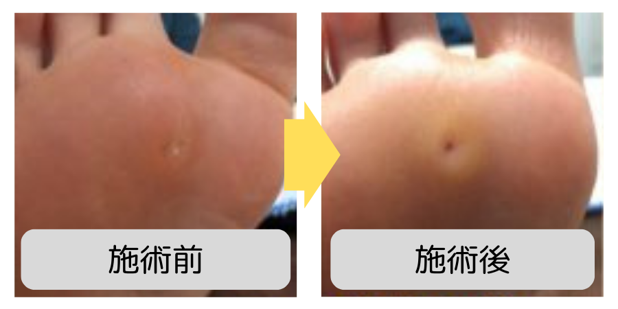 魚の目:フットケア専用マシーンを使い皮膚の奥に伸びた角質を丁寧に取り除いていきます。